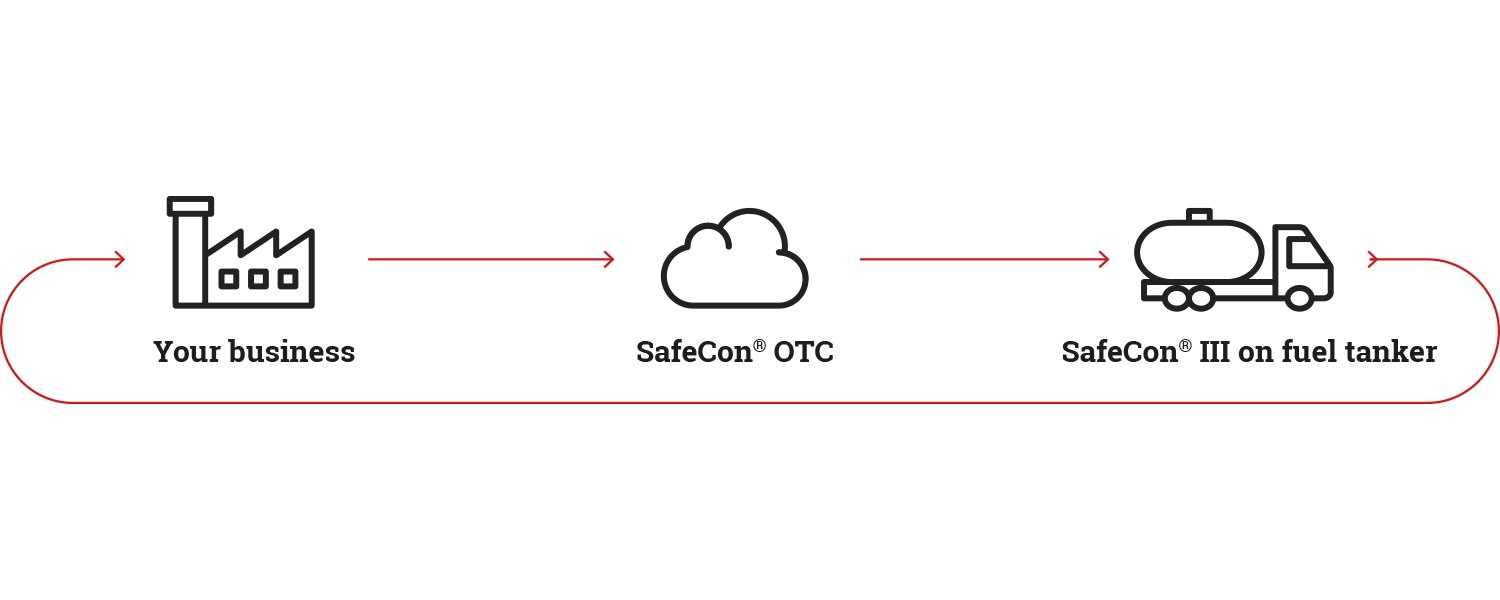 If you want to make your workday even more efficient, connect your fuel tanker to your office with our new SafeCon® OTC-system installed with SafeCon® III . The OTC-system delivers order data to the fuel tanker and sends billing data back to the office. It optimizes the working day for both you as a driver and the office staff.