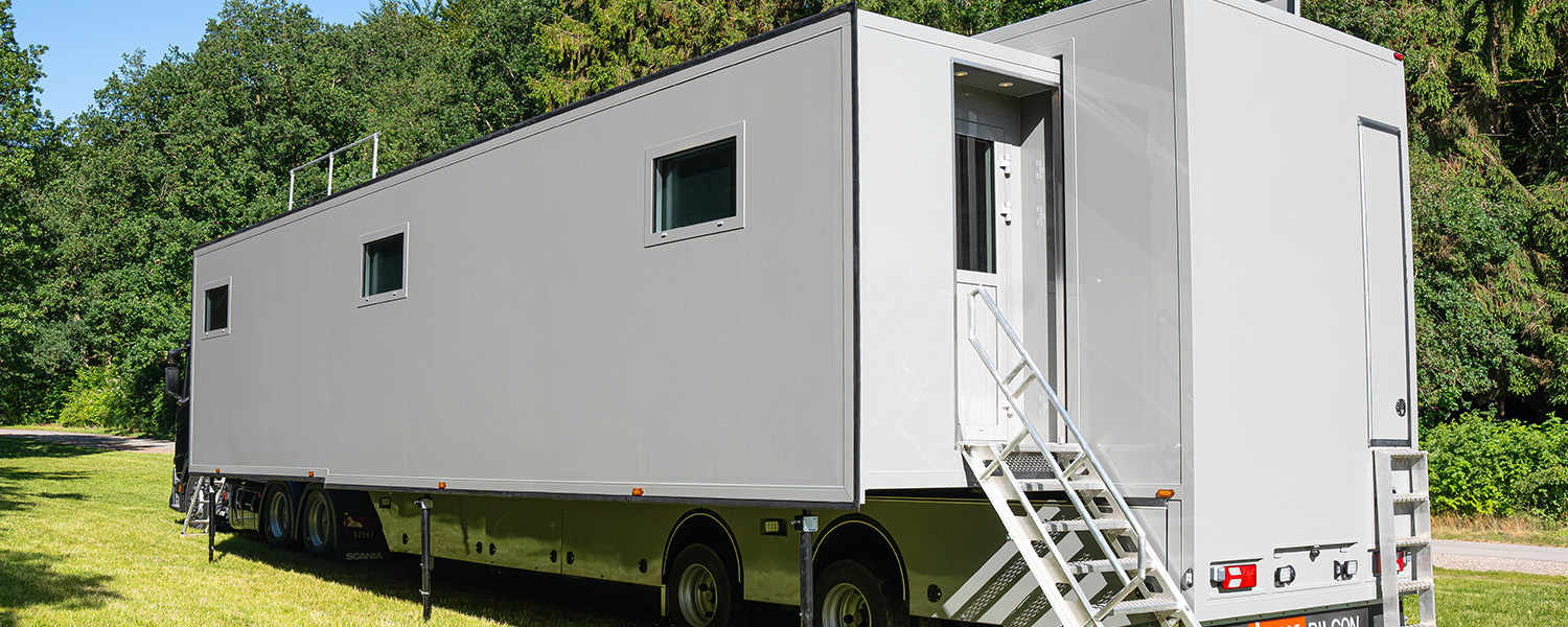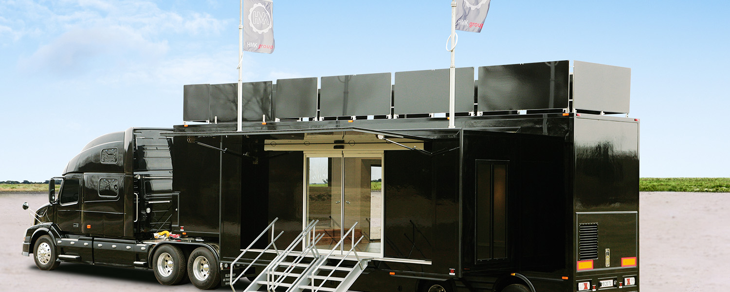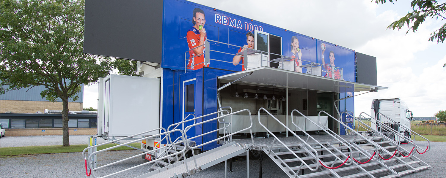 Vår Expandable S trailer er en romslig tilhenger på ca 50 m², som kan tilpasses mange forskjellige oppgaver. Tilhengeren er typisk med 2 utvidbare seksjoner, som skyves ut under oppsett og gir 1,1 m ekstra plass på hver side. Den er bygget i glassfiberforsterkede polyesterplater, som er isolerende og ekstra slitesterke.