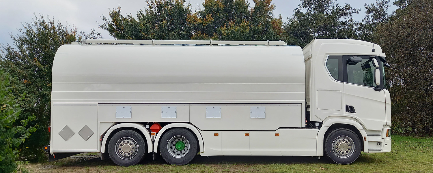 Tanken på tankbilen är tillverkad i aluminium och har därför låg egen vikt, vilket möjliggör transport av mer bränsle per resa. Den kan lasta från 9 000 till 23 000 liter beroende på behov.